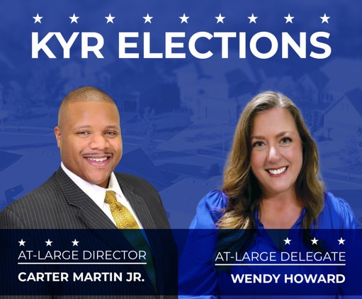 During the Board of Directors Meeting held during the 2025 Kentucky REALTORS® Convention and Expo (it was just a blink of an eye ago, it seems) Carter Martin Jr.was elected to At-Large Director and Wendy Howard was elected At-Large Delegate. Congratulations, Carter and Wendy!